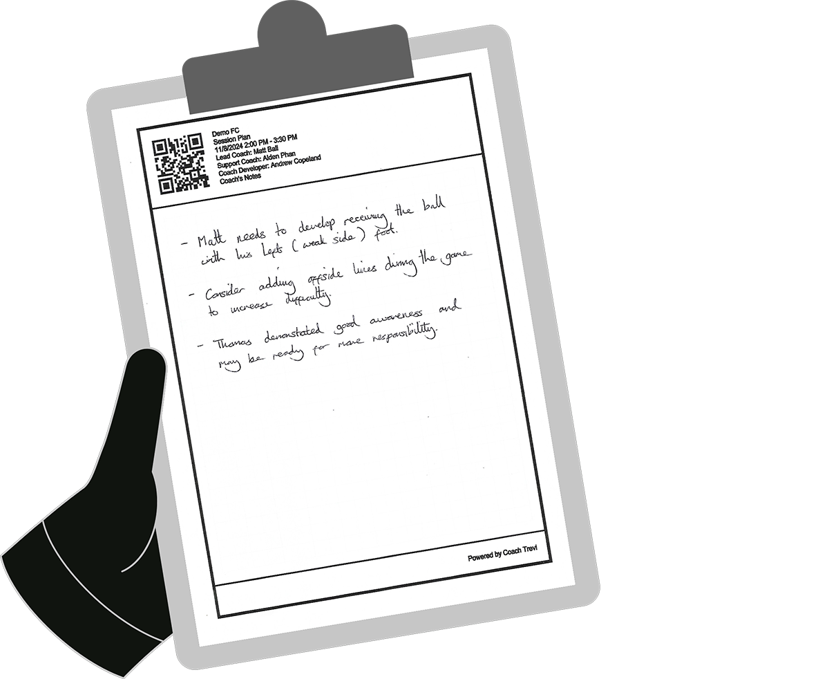 Notes taken during sessions can be uploaded to Coach Trevi to create comprehensive records which be used for future planning, performance analysis and sharing best practices.